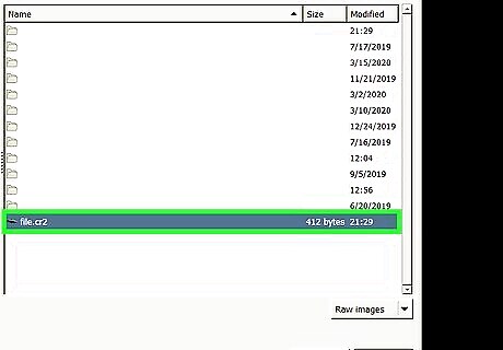 Navigate to your file in the panel on the left side of the window. You can double-click through the files on your computer to find your CR2 file. For example, if you have a CR2 file on your desktop, double-click the "desktop" folder and you'll see the CR2 file in the pane to the right.