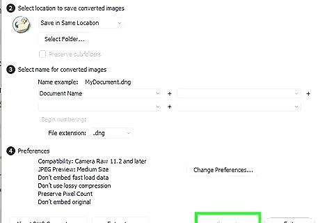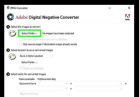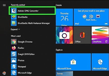 Open Adobe DNG Converter. You'll find this in your Start Menu on Windows or in your Applications folder in Finder on macOS.