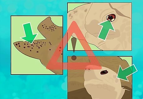 Look for signs of sickness. Once you've set to waking up your tortoise, he should start eating within seven days. If he doesn't, he may be sick. If you notice that your tortoise refuses to eat, you should take him to a vet that specializes in reptiles immediately. If you let it go, he could get worse. You also need to check his overall appearance and demeanor to see if he is healthy. When he wakes up, check his: Body for lumps, swelling, scraps, or cuts, as well as pinkness under his shell Eyes for inflammation or discharge Tail for unusual odor, discharge, or swelling Nose for blockage or discharge Mouth for signs of rot, which include yellow or white cheese-like residue Ears for abscesses The longer you leave him alone without treatment, the greater the risk of complications for him will be. This can lead to infection or overwhelming, which can cause organ failure.