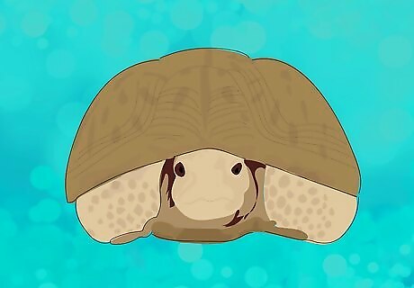 Give him water. When your tortoise is just waking up, he needs plenty of water. This will help him flush any toxins out of his system that he accumulated while in hibernation. This is even more important than food since he needs to drink before he can eat. Your tortoise will not just drink the water from a bowl. You need to instead put him in a bath of lukewarm water no higher than his chin. Also splash it on his shell and head. When he first wakes up, he may dip his head under the water and drink directly from it. This is normal. Leave him for five minutes at a time and do it daily for about a week or so, which should be about the time he eats properly again. He then needs to sit with his tail region in a small bowl of water for about 20 minutes once to twice a day. Since tortoises can absorb water through their anuses, this will help him get hydrated while he wakes up. Make sure the water bowl is not so deep that he could drown. To keep just his tail end in the water, prop his upper body on a smooth rock or book and leave his tail end in the bowl of water. You can place him in a tub of water, but you have to ensure his head is not covered so he won't drown.