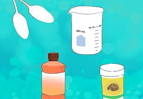 Provide glucose in his water. One way to help boost your tortoise while he is waking up is to put a little glucose (sugar) in some water to help get his energy levels back up. While he hibernates, this is stored in his body, but he will regain energy faster with a little extra glucose on his system. Make a mixture of 2 teaspoons of sugar in 250 milliliters (8.5 fl oz) of water. Give your tortoise 10 to 20 milliliters (0.34 to 0.68 fl oz) of this solution a day as he is waking from hibernation. You can also use Pedialyte or Reptoboost, an electrolyte boosting substance specifically for reptiles. Only do this around the time he is waking up from hibernation. Doing it all the time can lead to high blood sugar levels.