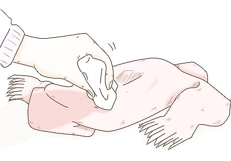 Dab any stained areas with a stain-removing wipe. Make sure to dab, rather than rub, so that you don’t cause pilling in the fabric. If you don’t have a stain-removing wipe, you can put a little bit of liquid stain remover onto a paper towel. You have the best chance of removing the stain if it’s fresh.