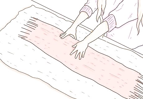 Lay the scarf out flat on another towel to dry overnight. Put out a clean, dry towel in a spot where you won’t accidentally step on it. Lay your scarf out flat on top of the towel. Smooth out the scarf so that it doesn’t have any wrinkles. Return to it the next day to see if it’s dry. Don’t hang your scarf to dry, because that will pull at the fibers.