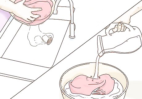Fill a large bowl with room-temperature water. Really cold water won’t clean your scarf very well, whereas hot water may shrink the cashmere. If you can’t get room-temperature water, err on the side of cooler water. You can also wash your scarf in a clean, plugged sink, instead of a bowl. Just make sure there’s no food, toothpaste, or other residue in there.
