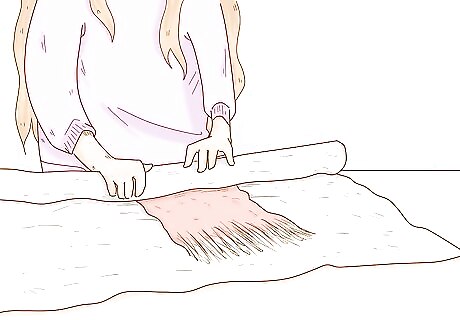 Roll the scarf in a towel to get more water out. Place a towel flat on the ground and the scarf on top. Roll the scarf and the towel up together. Put light pressure on top of the rolled towel so that water squeezes out of the scarf and into the towel. If you want, you can repeat the process with a second dry towel, but you don’t have to.