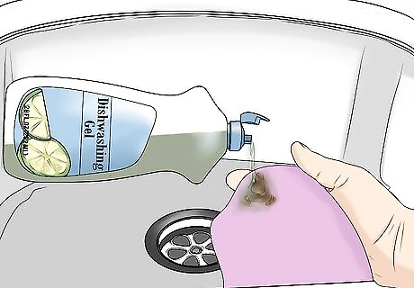 Treat stains with liquid dish soap if you don’t have stain remover. It’s a good idea to spot test your dish soap on a small inconspicuous part of your leggings, too. Then, apply liquid dish detergent directly to the stained area, making sure to cover the entire stained area with liquid dish soap. If your stains don’t come off after a wash though, you might want to buy stain remover.