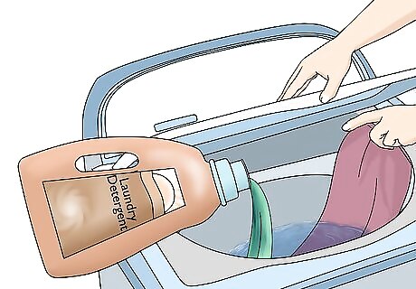 Pretreat the stained areas with stain remover. The sooner you treat and wash the stained part of your leggings, the higher chance you have of removing the stain. Don’t vigorously rub at the stain, because that will make it set in more and might cause pilling on your leggings. Only put the stain remover on the stained area to protect the fabric.