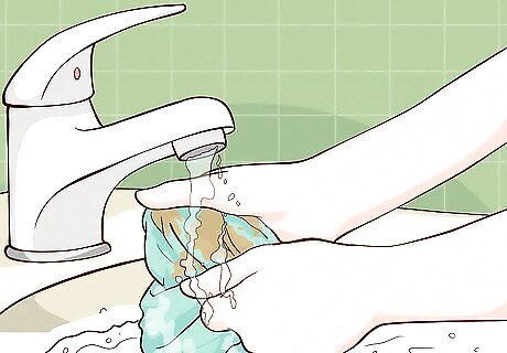 Rinse the stained area in cold water first. Run the stained part of your leggings under cool water to try and get out most of whatever caused the stain. This is particularly important for period stains, because you can get a lot of the blood off just by rinsing. Don’t use hot water because it will set the stain more.