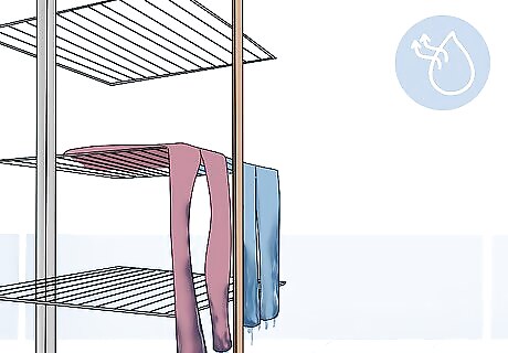 Air-dry your leggings on a drying rack for best results. Since Lululemon uses moisture-wicking materials in their leggings, it should only take a few hours to let your leggings air-dry. Air-drying is much gentler on the fabric then drying your leggings in the dryer and will help your leggings retain their elasticity. Don’t try your leggings on a cotton towel, because the fluff will stick to them. If you dry your leggings in a sunny spot, the sun will also help disinfect your leggings by killing bacteria.