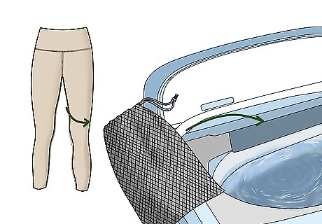 Turn your leggings inside out and put them in a mesh bag. Washing your leggings in a delicates bag protects them from getting snags and tears inside the washing machine. Turning your leggings inside out not only protects the surface of your leggings, but also allows the insides, which are the most sweaty, to get cleaner. If you don’t have a mesh delicates bag, you can use a pillowcase as a substitute.