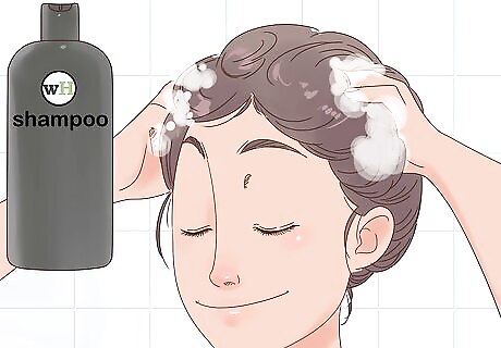 Add shampoo and conditioner to the hair. Use shampoo that is appropriate for your extensions and make sure to wash it off thoroughly before using conditioner, only applying mid-shaft down. Make sure that you are handling your extensions carefully through this process. Using leave-in conditioner is also recommended to keep the moisture in hair extensions since they cannot produce natural oils.