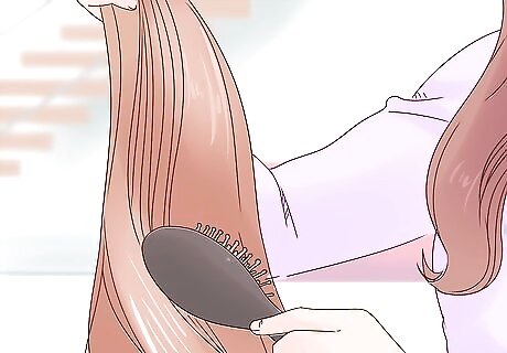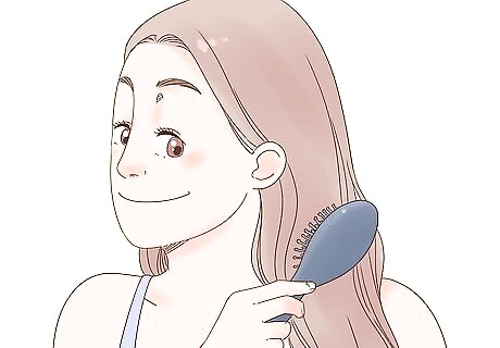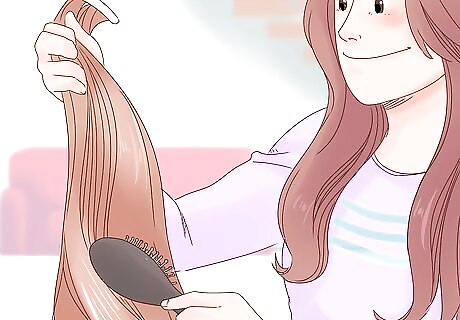 Brush your hair. This will ensure that your natural hair and your extensions do not have any tangles. Proper brushing is an important part of caring for your hair extensions. Make sure to always brush your hair before getting in the shower. Use a hair brush with specialised bristles that do not tug or pull on your extension bond. This will help to keep them attached to your hair for a longer period of time. It is recommended to brush your hair between 2 to 3 times a day when you have hair extensions in order to keep them nice and tangle free.