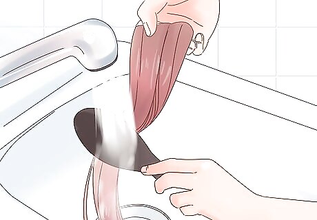 Moisten the hair gradually with water. Wetting the hair all at once can create tangles and make it difficult to care for your extensions in the long run. Adding water gradually will therefore ensure that the hair does not get tangled while washing. Brushing the hair gently as you add water is also an effective way to prevent tangles from being created.