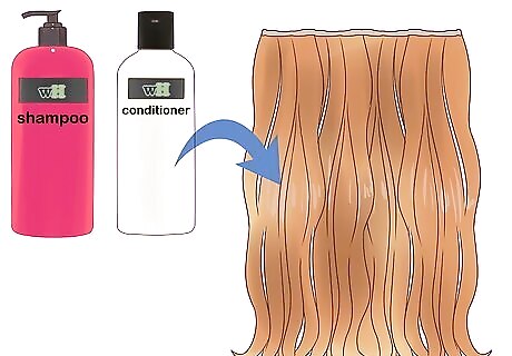 Apply conditioner. The conditioner will help keep your natural hair and your extensions looking healthy. However, only apply conditioner on your extensions from the mid-shaft down. This is where moisture is needed the most. Avoid applying conditioner or any oily hair products to your extension bonds. This will cause them to become loose and eventually slip off.