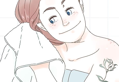 Use a towel to dry. Wrap the hair in a towel and apply some gentle pressure to absorb the water, once again working from the top to the bottom of the shaft. Avoid rubbing the towel into the hair as this can create tangles and cause damage.