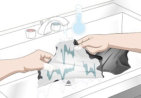 Fill a sink or washing basin with cool or lukewarm water. You can use water straight from the tap. Do not use warm or hot water, as it could damage the fabric.