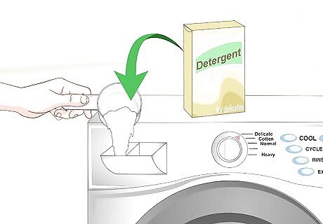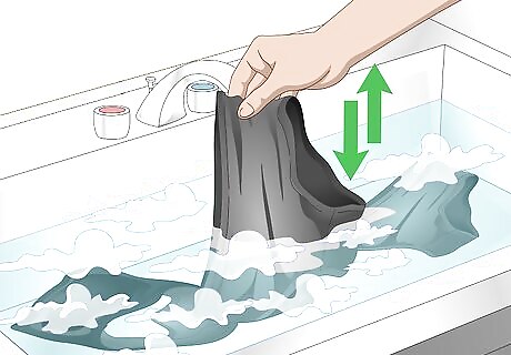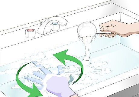 Mix a cap of detergent formulated for lingerie or delicates. Put gloves on before mixing the water and detergent with your hands. The water should be slightly soapy. You can use detergents like Persil Handwash, Woolite Delicates Care, or Tide Free and Gentle.