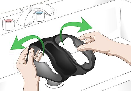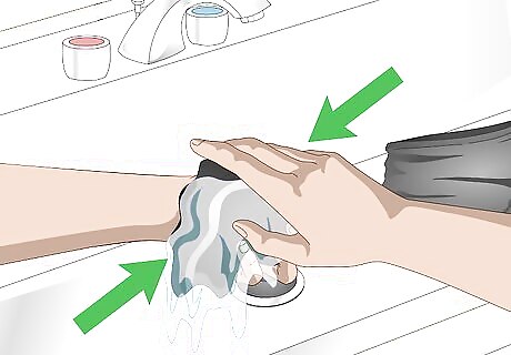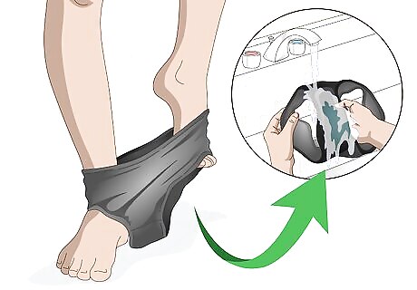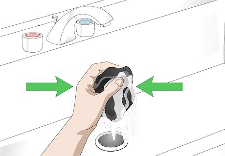 Wring out excess water. When you are done washing each pair, squeeze out the water over the sink or basin. Be gentle as you squeeze. Do not twist or stretch the fabric. Get as much water out as you can.