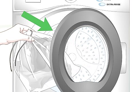 Place the bag in the washing machine. You can put Thinx panties in the washing machine with other Thinx, lingerie, bras, or delicate clothing. Do not put Thinx in the wash with non-delicate clothing or heavy items like towels.