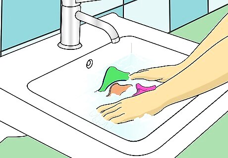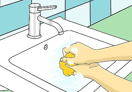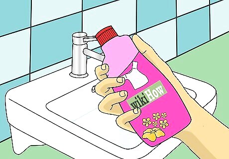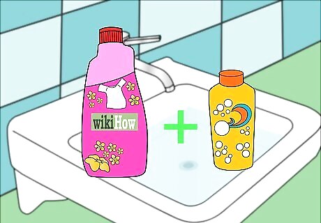 Pour some body wash and liquid detergent into the sink.