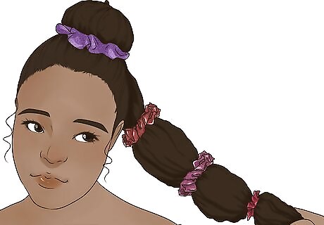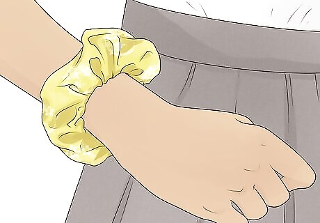 A twist on the classic ponytail is sure to spice up your look. Pull your hair into a high ponytail and secure it with a scrunchie. Add 2 to 3 more scrunchies down the length of your ponytail for a multi-colored rainbow of accessories! This look isn’t for the faint of heart—you’ll definitely turn some heads in this one. Try using this style to dress up a plain or monochromatic outfit.