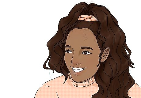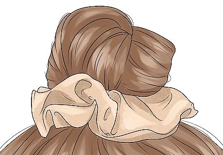 Throw it back to the 80s with this fun and flirty look. Use your hands to pull all of your hair up to the crown of your head, then secure your ponytail with a scrunchie. This style works great with a summery outfit, like a crop top and a skirt. Or, you can use it to spice up a winter look, like a fall sweater and a plaid skirt.