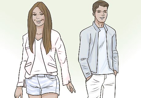 Spice up a suede jacket with statement slacks. Wear a classic neutral suede color, like tan or gray, and give yourself the perfect canvas for statement slacks. Wear bright white slacks with a nude suede jacket, black leather pants with a gray jacket, or leopard pants with black suede.