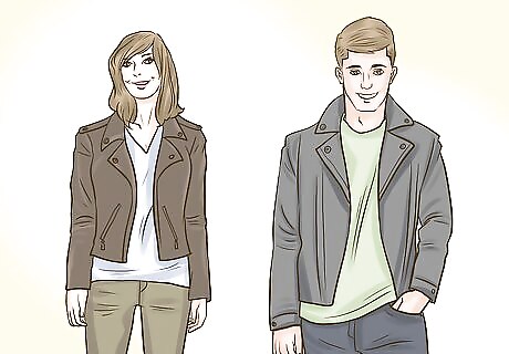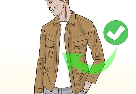 Be retro in a suede bomber jacket. The 70’s throwback looks like a fresh update with the textured look of suede. Wear a brown suede bomber jacket with a simple white tee or layer it over a wool sweater in the winter. Look effortlessly hip by throwing your favorite blue jeans on or complete the retro theme by wearing navy slacks. Check to make sure the ribbed cuffs feel snug.