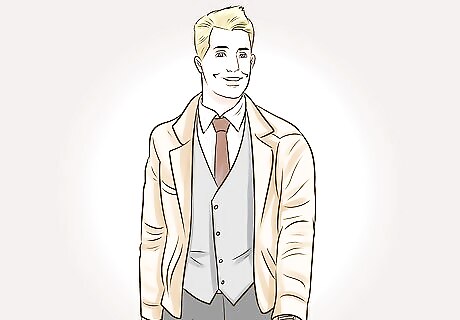 Wear suede with a vest. If you opt for a slimmer fit suede jacket with a tailored look, you can layer a vest underneath. Pair tan colored suede with a light grey vest and a white button up shirt. Wear a tie if you want to look impeccably put-together.