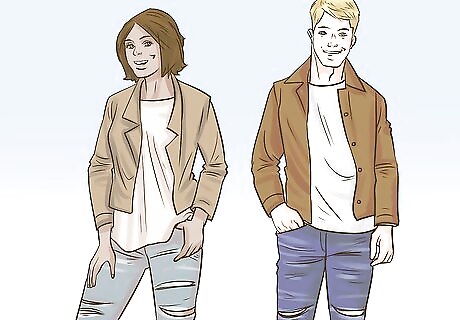 Substitute suede for your jean jacket. Look for a suede jacket with the same style details as a jean jacket. Find a waist length button up jacket with front pockets in suede. Dress up casual outfits with the luxurious look of suede. Plus, you can layer it over such a wide range of outfits that it may turn into your favorite jacket.