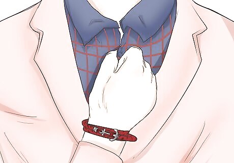 Wear small, functional bracelets for everyday styles. You don’t want to overwhelm an outfit at work or school with loud, bright, or distracting bracelets. Instead, stick to 1 or 2 thin, classic bracelets, like a thin bangle or a chain with a gemstone if you want to be a bit dressier. You can pair an understated bracelet with just about anything. Try it with a conservative office or school outfit to add a little style to a simple look.