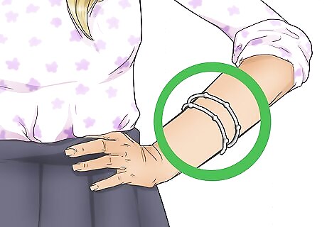 Go for wide bracelets if you want to slim down your wrists. Bracelets that are about 2 inches (5.1 cm) wide can work to minimize your wrists and elongate your arms at the same time. Try a well-fitted cuff bracelet, or something thicker and more chunky. You can also see the same effect by stacking bracelets to the same width.