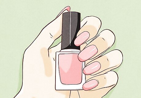 Paint your nails pink. Pink is a classic nail color choice, and you can find nail polishes in every shade of pink you can think of. Choose a shade that you like, or, if it is for a particular occasion, choose a pink that matches the tone of the event. For example, a soft pastel pink could be great for a more professional event, while a hot pink would be great for a big night out. If you can't decide, you can also try out a trend that is called ombre nails. This involves using a small sponge to paint each section of your nail a slightly different shade from bottom to top. This creates a sort of gradient appearance with dark colors at one end of the nail and lighter shades of the same color at the other end.