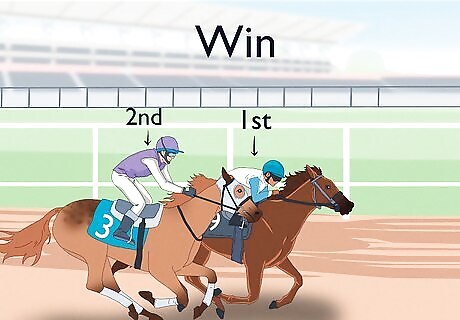 Familiarize yourself with different types of bets. When you go up to window, you need to know what you want! Here are your basic options: Show – your horse can get 1st, 2nd, or 3rd and you win Place – your horse can get 1st or 2nd and you win Win – your horse must get 1st to win Quinella – bet 2 or 3 horses to finish 1st or 2nd, in any order Exacta – bet 2 horses that must finish in 1st and 2nd in exact order Trifecta – bet 3 horses that must finish in 1st, 2nd, and 3rd in exact order Superfecta – bet 4 horses that mush finish in 1st, 2nd, 3rd, and 4th in exact order