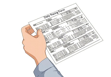 Hone your handicapping skills. Handicapping is the process of determining which horse has the best chance to win a race. It is a test of your creative intelligence, not systematic computation. To do this, you’ll need the Daily Racing Form, which you can buy upon entering the track. The DRF is full of a whole bunch of stats and figures, which we’ll be discussing below. Once you know how to decode the racing form, you’ll have a pretty good idea of which horses will (or at least should) do well.