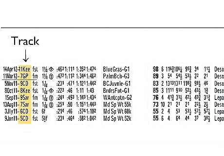Take into account the track and the weather. This is called “track bias”: no single factor in handicapping can change the complexion of a race like a track bias. If wise bettors detect any kind of bias in the racing surface, they incorporate it into their decision-making. What is track bias? Every horse has their preferred surface, whether it’s turf or dirt. You want to know how your horse will perform on whatever your track is. Don’t forget the weather! A little rain quickly turns that dirt into mud. Take into account how your horse has performed in this type of weather, not just the type of track.