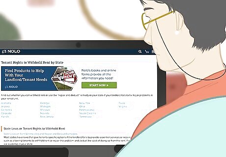 Review your state’s landlord tenant laws. If your landlord fails to make the necessary repairs, you should review your state’s landlord tenant laws so that you have a clear understanding of the landlord’s responsibilities and the circumstances under which you can withhold rent, reduce rent, or have the problem repaired and deduct the cost from your rent. You can find a list of state-by-state laws regarding rent withholding and landlord/tenant rights and obligations here: http://www.nolo.com/legal-encyclopedia/tenant-rights-withhold-rent-state. Generally, you are reviewing your state’s laws for the following: The reasons that legally allow you to withhold your rent, such as structural repairs or repairs to the electricity or plumbing. Whether you are required to give the landlord a certain type of notice and how long they have to make the repair before you can withhold rent. Whether you are required to place the withheld rent in a separate bank account or deposit it with the local housing authority.