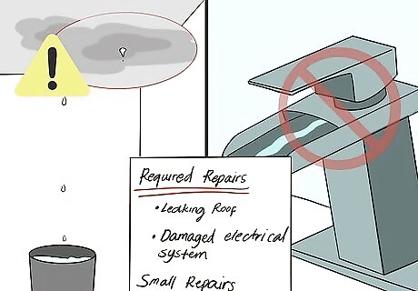 Evaluate your apartment for required repairs. In order to determine whether the landlord is required to make repairs to your apartment, you must inspect your property and detail all of the necessary repairs. Once you outline the repairs needed, you need to divide the list into repairs that must be made legally and small repairs that you would like the landlord to make but that he is not legally obligated to repair. You can only withhold rent for repairs that are legally required. When making your list, consider the following: Your landlord is required to make all repairs to ensure that your home is habitable. These repairs include, structural repairs (the ceiling has a big hole in it), repairs to leaking roofs, provide hot and cold water, ensure that the plumbing, heating and electrical systems are working and safe. The landlord must also hire an exterminator to get rid of bug or rodent infestations unless you caused the infestation. Landlords may also be required to provide and maintain smoke detectors, sprinkler systems, and window guards. Failure to do so may make the home unsafe and uninhabitable under the laws of your state. Landlords are not required to fix dripping faucets or running toilets, small cosmetic problems such as a small hole in the carpet or scrapes on the floor, unless these repairs are required under your lease.