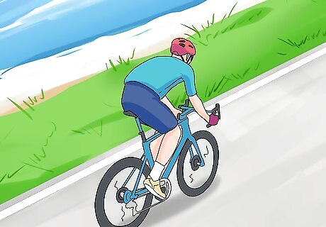 Ride a bike for 5 miles (8 km) if you can. Either mountain or road biking will work for your cardio exercise. Try to maintain a constant speed to get the full benefits of the workout. When you feel comfortable at a certain speed, increase the speed or distance you bike. Make sure to wear a helmet when you’re biking outdoors. You can use a stationary bike if you have access to one. Biking will help you strengthen your legs as well as your cardio.