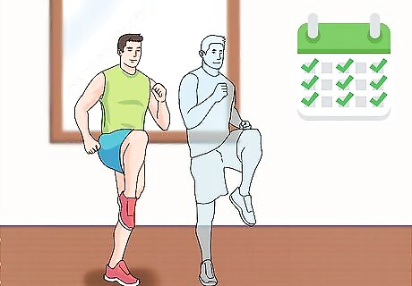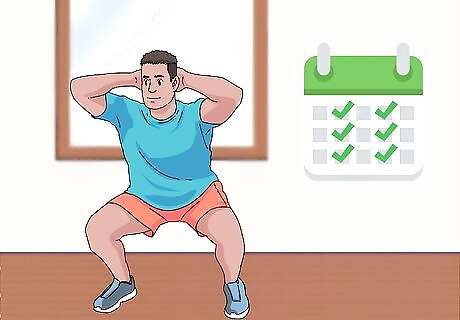 Work out your legs at least twice a week. Aim to work your legs at least 30-60 minutes during each session. Spread the days you exercise your legs throughout the week so you don’t get fatigued or cramped.