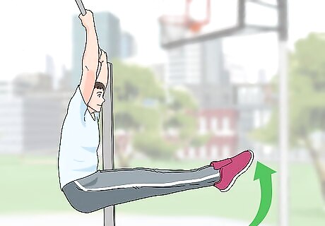 Work on leg raises if you have access to a pull-up bar. Hang from a pull-up bar so your arms are straight and your hands are slightly wider than your shoulders. Keep your legs straight and lift them so they’re parallel to the ground. Hold the position for 1 or 2 counts before slowly lowering your legs again. Repeat the leg raises for 15 reps. Your core will help you keep your balance on your board.