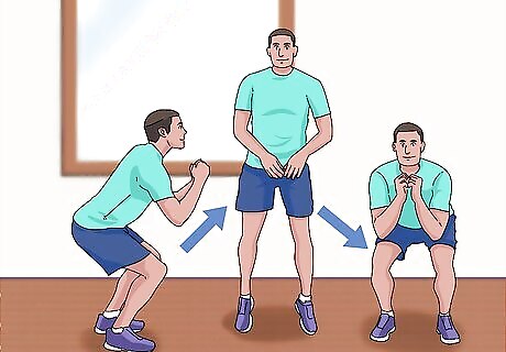 Try jump turns to work your core at the same time. Start with your legs bent at a 90-degree angle, back straight, and your arms in front of you. Straighten your legs and jump straight in the air. When you’re in midair, turn your body 180 degrees so you’re facing the opposite direction. Go back down into the starting position when you land and jump again immediately, turning back towards the way you were originally facing. Repeat the workout for 3 sets of 20 jumps. To make the jump turn easier, rotate your body 90-degrees instead of 180. This exercise helps strengthen your legs and keeps your core flexible.