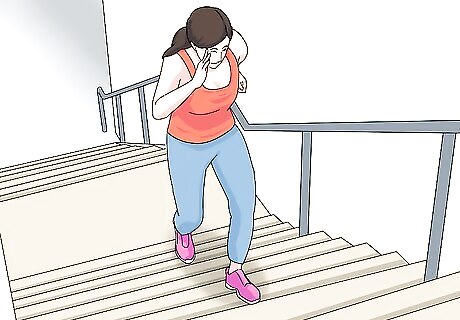 Do stair climbers for a full-body exercise. Keep your back and neck straight as you go up and down the stairs. Plant a foot on each step as you ascend and descend the staircase so you don’t trip and fall. Practice climbing stairs for 15-20 minutes at various speeds to stay active. Even taking the stairs instead of an elevator can help increase your endurance. Never run down the stairs since this causes stress to your ankles and knees.