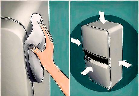 Clear the kitchen of unneeded clutter. Clutter can cause a small kitchen to appear even smaller than it is. If you are struggling to find storage space, make sure that the things in your kitchen are necessary. Clear off flat surfaces to give yourself more space to work and move non-kitchen items out of the room. Some things that may be cluttering your kitchen include a plastic wrap or tin foil containers, magazines, books, Tupperware, trash bags, and pot lids.