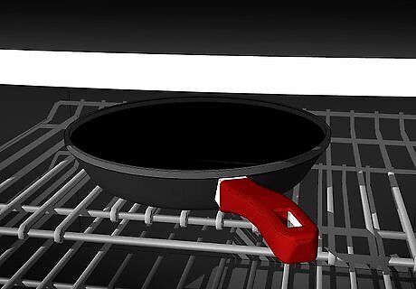 Use the oven for storage. If you have no storage space for things like cooking trays, pots, or pans, you can use your oven to store the items while you don't use them. Just make sure that you take everything out of the oven when you decide to use it.