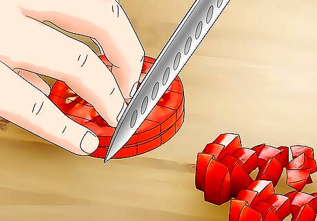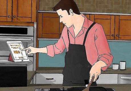 Do prep work in advance. Doing prep work before you cook will make cooking easier and will reduce your overall cleanup. Think of things that you can do before you cook, like cutting vegetables or cooking pasta. Other prep work includes marinating and cutting meat, making sauces, measuring spices.