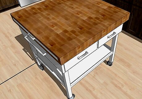 Install an island. An island in your kitchen will allow you to use extra unused floor space for storage. Also, you can use the surface as an eating space, saving space needed for a table. When choosing an island, consider the storage possibilities through drawers, shelves or hooks that can be incorporated into the design. When installing a new island, make sure to leave at least 36” (91.44 cm) of space in between the island and appliances.