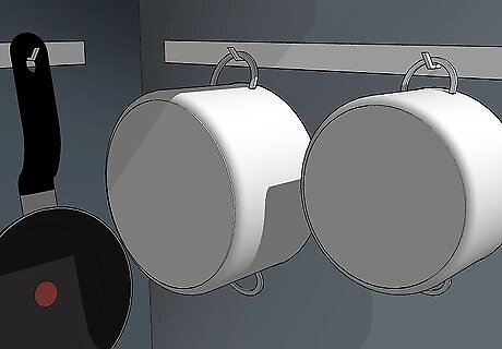 Install hooks to hang things. Instead of storing your pots and pans inside of a cabinet or pantry, you can store them on the wall if you install hooks.You can also hang hooks on the inside of your pantry doors to hang more items.