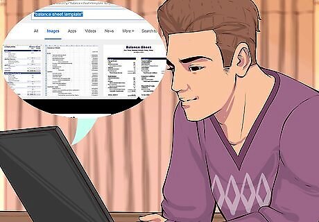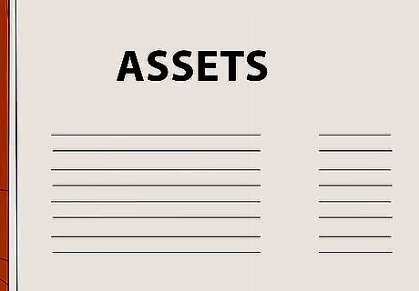 Set up your balance sheet. Unlike business balance sheets, which follow a preset formula, a personal balance sheet can follow any type of organization. In general though, it's a good idea to start by organizing your spreadsheet or paper into two rows or columns, one for assets and one for liabilities (debts). You can either do this by hand or use a spreadsheet program on the computer. There are also pre-made templates and editable online files that can be used to create a personal balance sheet. Try searching Google for "personal balance sheet template" and several options will show up. When judging the size of your balance sheet, know that your assets and liabilities will be listed by category and not by individual item. So if you have a large amount of valuable household items, know that these will be combined and listed as one line item on your balance sheet. Generally, a balance sheet should be no longer than one page.
