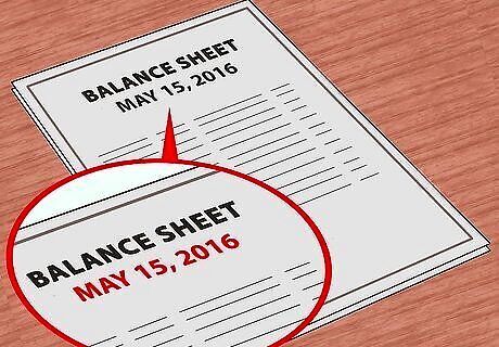 Choose a date for your balance sheet. Businesses are required to report their balance sheets on a certain date or dates each year. As an individual, however, you have much more freedom to choose your own date. Just be sure that the amounts that you gather for your debts and assets are all from the same date. List this date at the top of your balance sheet to remind you and also so that you can refer back to your balance sheet later. For regularity, you may choose to do a balance sheet at the end of the calendar year or twice per year at a set date. This will allow you to follow your net worth growth year-by-year.